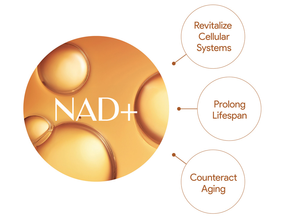 After the age of 35, NAD+ levels in our body decline rapidly. This reduction lowers the ability of cells to repair DNA, accelerating the accumulation of DNA damage and speeding up the aging process. Maintaining sufficient levels of NAD+ helps preserve DNA repair functions, effectively slowing down aging.